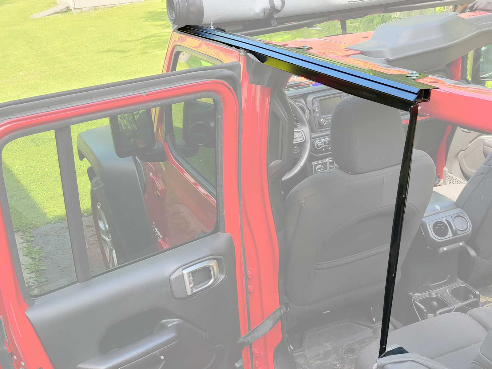 The entire SUNTOP system relies on our hardware that rebuilds the factory door surrounds. This hardware gives the fabric top something to connect to, creates a weather proof seal around the doors, and gives the rear window kits something to attach to. It also has a bar across the top of the windshield that provides a strong connection for the front of the top.